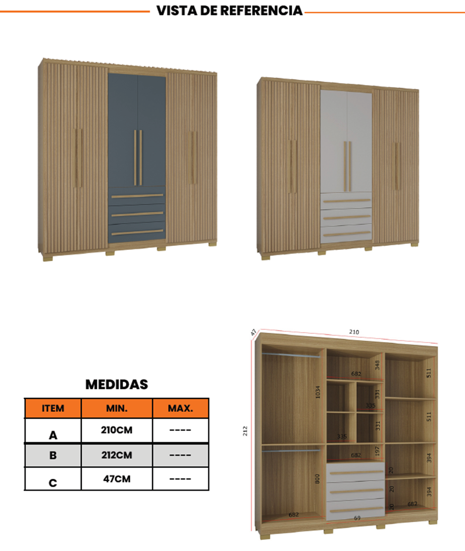 El diseño acanalado en Damasco añade un toque único y sofisticado, haciendo del Closet 6P Amazonia una pieza que no solo es funcional sino también un elemento decorativo que realza tu habitación.