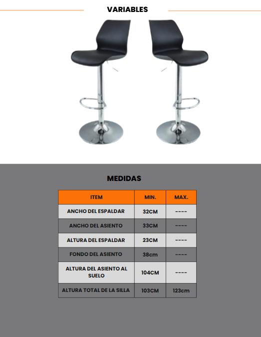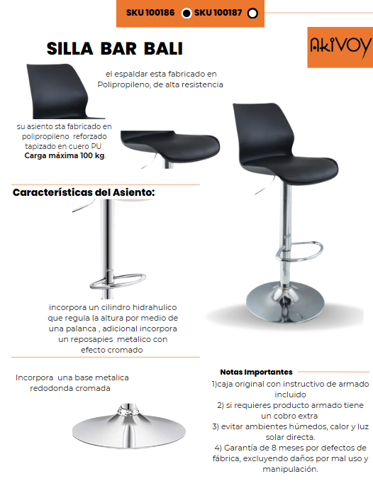 Además, incorpora espaciadores en la parte inferior para proteger tu piso de rayones y reducir el ruido al mover la silla. Fácil de instalar, esta silla es la opción perfecta para bares, cocinas o espacios modernos.