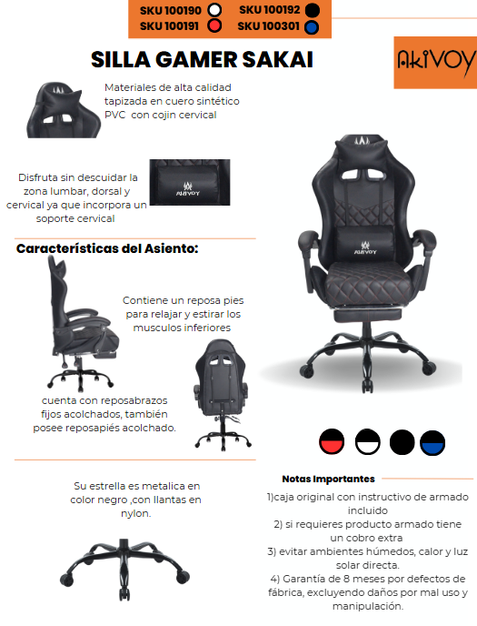 Descubre la Silla Gamer Sakai Blanca, diseñada para ofrecer el máximo confort en largas sesiones de juego o trabajo. Tapizada en cuero sintético PVC negro con elegantes insertos en blanco, combina resistencia y estilo moderno.