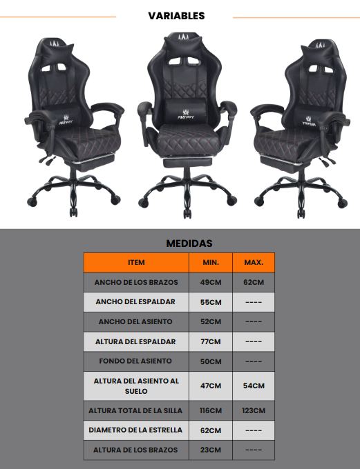 Cuenta con cojines ergonómicos de soporte lumbar y cervical, ideales para mantener una postura saludable. El espaldar es ajustable, reclinándose hasta 135°, y su sistema hidráulico de clase 2 permite regular la altura con facilidad.