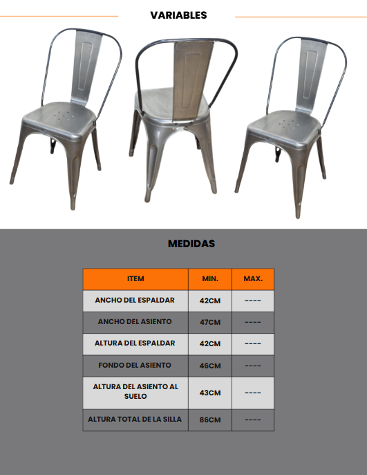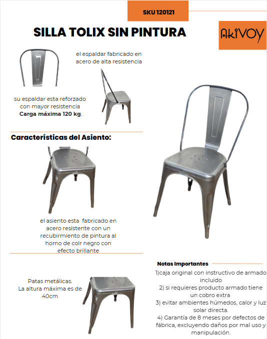 Transforma cualquier espacio con la icónica Silla Tolix sin pintura, una pieza que fusiona el encanto del estilo europeo rústico e industrial. Perfecta para hogares, oficinas, cafeterías o jardines, esta silla metálica perforada garantiza durabilidad y funcionalidad.